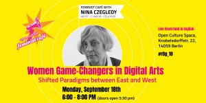 As part of our r0g_10 year anniversary celebration, the r0g_agency will be hosting the next open culture feminist café (#OCFC) on Monday, September 18th at 6pm at the r0g_agency open space in Berlin Charlottenburg. For this upcoming #OCFC we are very happy to have Nina Czegledy be our speaker. Nina is an artist, curator, and…
