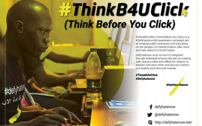 Download the PDF Version of this press release Juba, 6th April 2018: #ThinkB4UClick (Think Before You Click) is an awareness campaign that aims at pointing out the dangers of misinformation, fake news and hate speech with a focus on South Sudan. Over a period of one month, we aim to discuss with the public the…