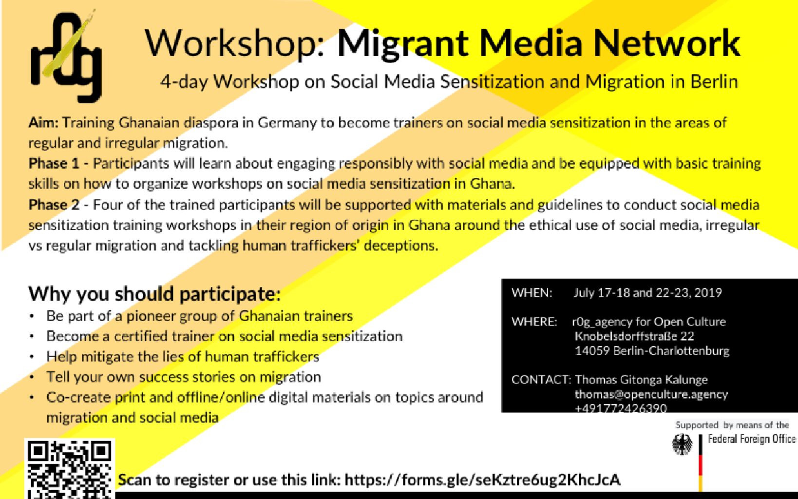 The Migrant Media Network is hosting a meetup on the 24. November 2021 from 18-20hrs, CET that focuses on the experiences of African diaspora communities in Germany. This meetup will focus on women and migration, specifically on how to create safe spaces for migrant women. The meetup will take place at the r0g_agency office, Knobelsdorffstr.22,…