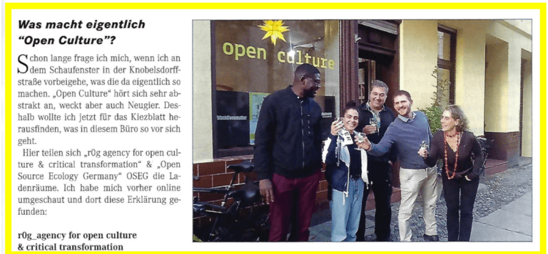 Was macht eigentlich “Open Culture” ? r0g_agency wurde in der Berliner Lokalzeitung, dem Kiezblatt, vorgestellt.