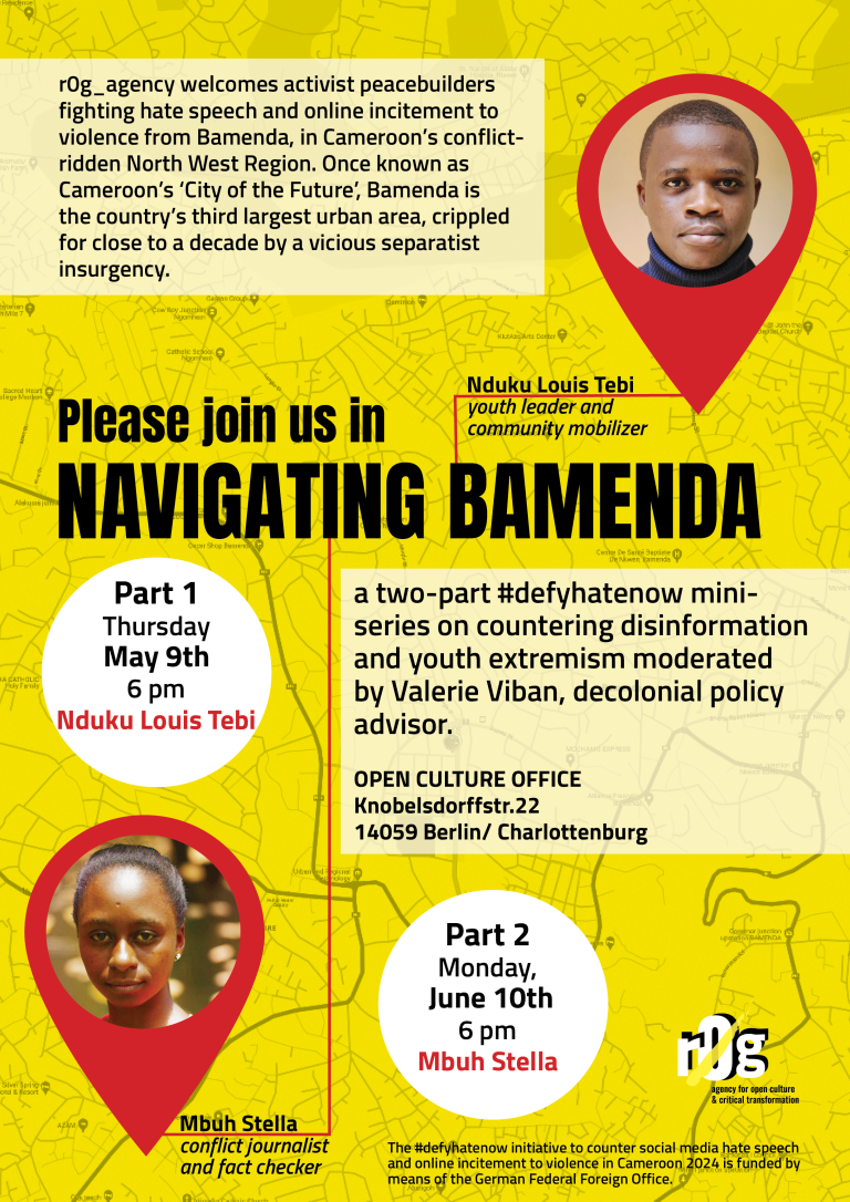 Please join us in Navigating Bamenda, the second part of our #defyhatenow series featuring journalist Mbuh Stella.