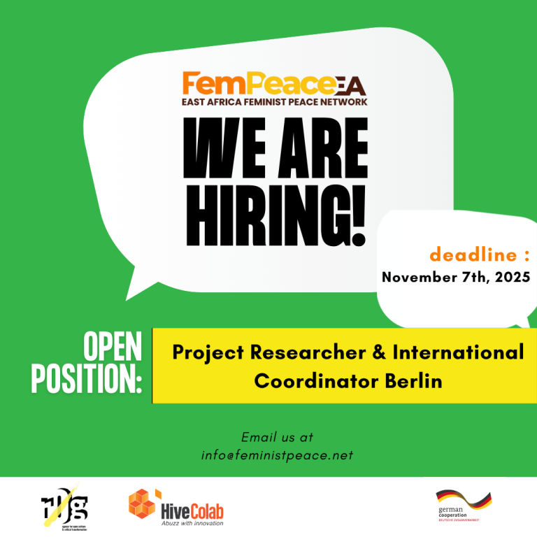 We are currently seeking an African feminist freelance expert to join the East African Feminist Peace Network Project as a Project Researcher and International Coordinator in a part-time position based in Berlin.