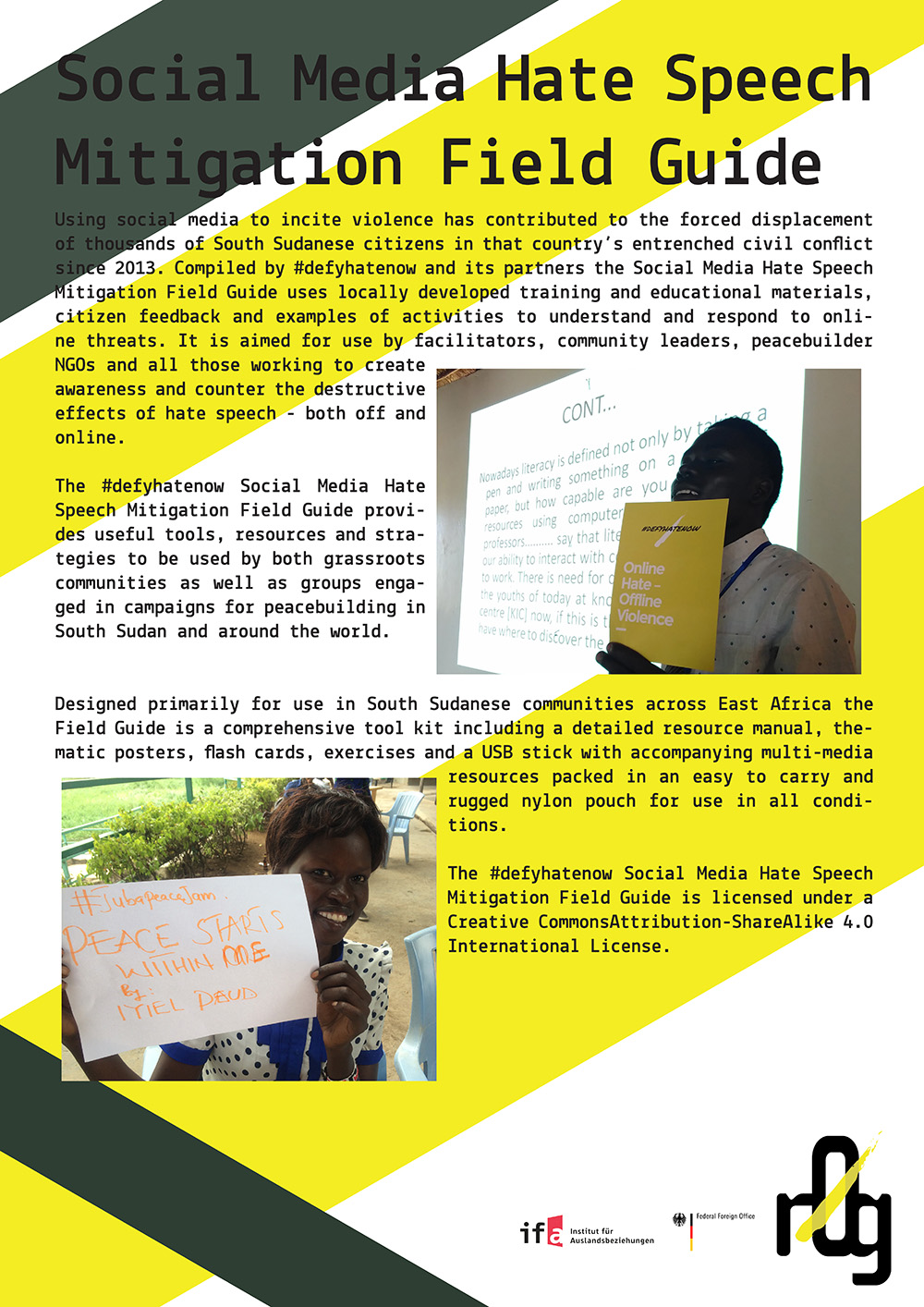The #defyhatenow Field Guide offers tools and strategies to be used by community-based organisations & online campaigns for peacebuilding in South Sudan and around the world.